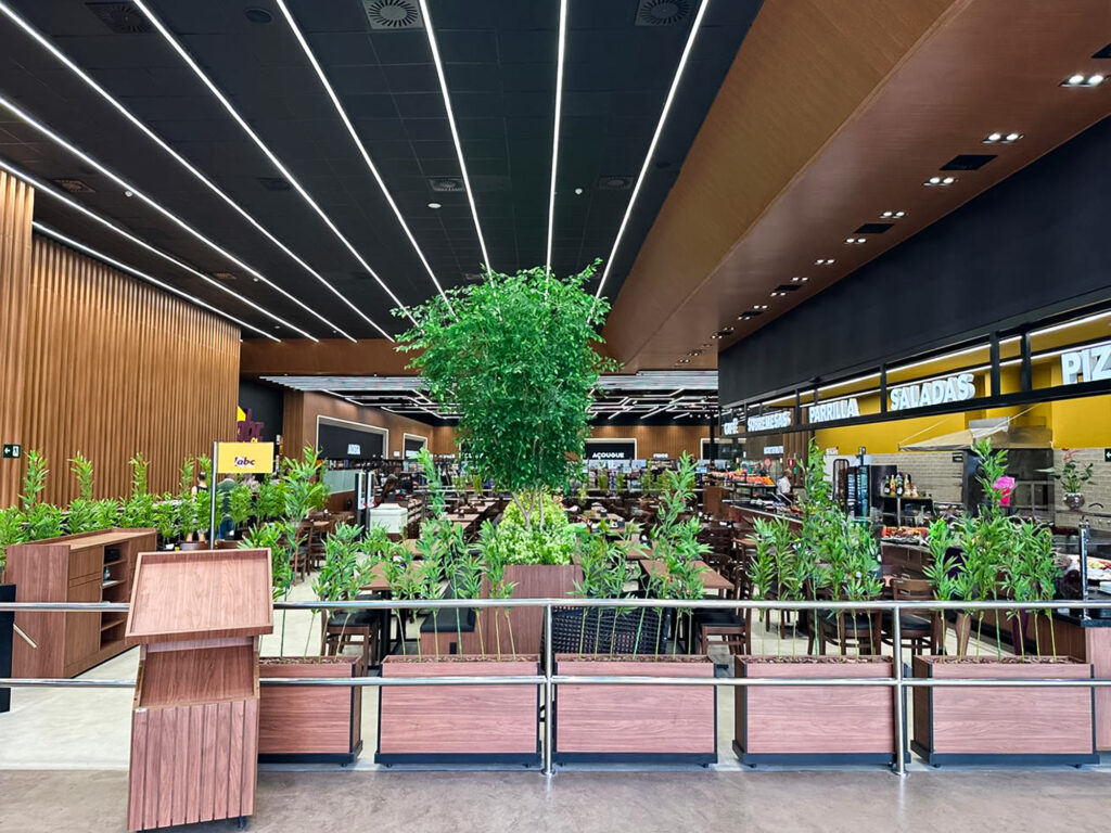 O layout foi pensado para valorizar a jornada do cliente, com setores bem definidos e exposição estratégica dos produtos, reforçando frescor e excelência. A ambientação contemporânea, aliada a materiais nobres, iluminação cuidadosa e comunicação visual elegante, cria uma atmosfera convidativa e diferenciada.