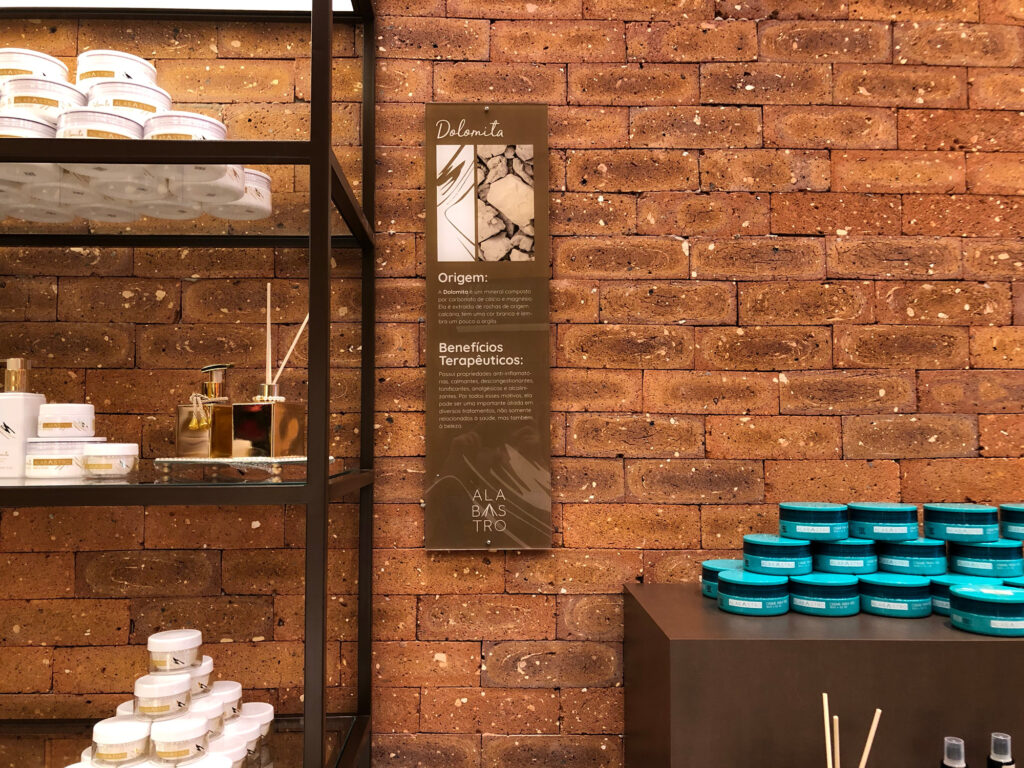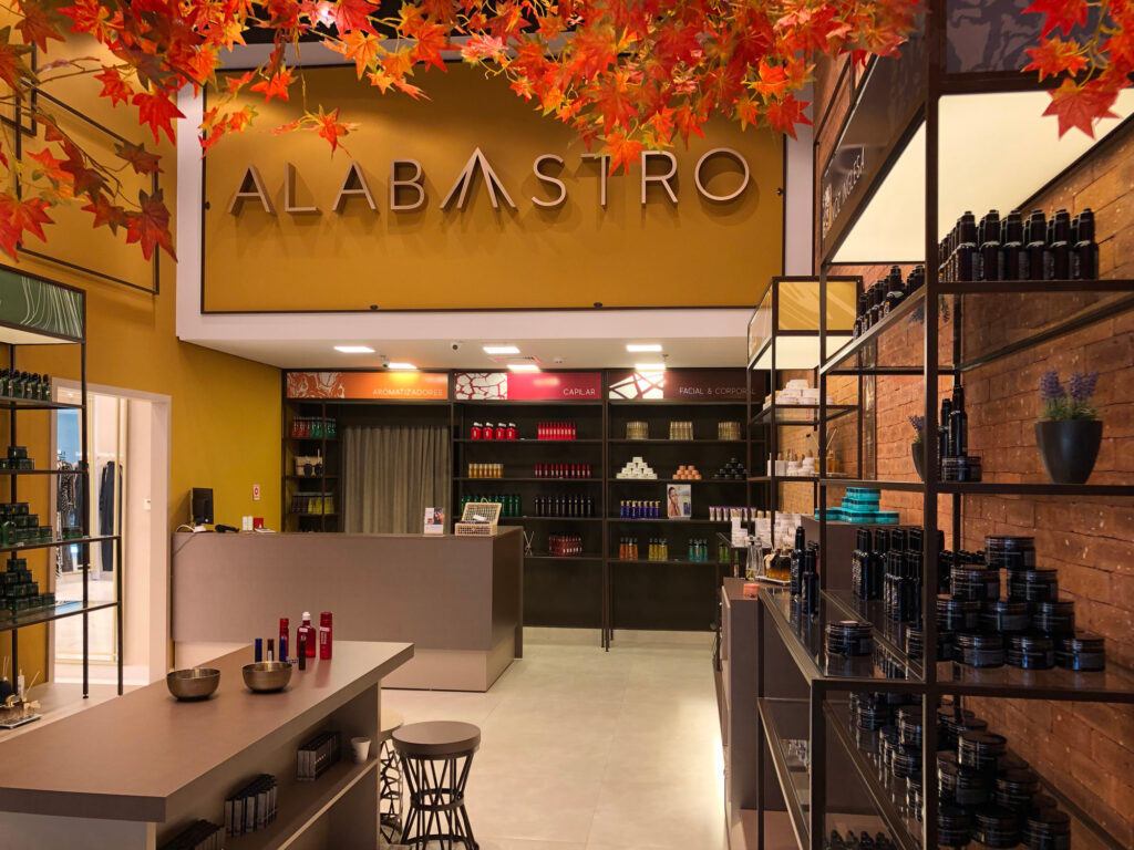 O Alabastro foi concebido como um novo conceito de loja de cosméticos, dedicada exclusivamente às seis linhas autorais da marca. Localizada no Shopping Estação Cuiabá, a proposta partiu da essência do próprio nome: o alabastro, pedra translúcida ligada à areia e às pirâmides do Egito, inspiração que guiou toda a atmosfera do projeto.