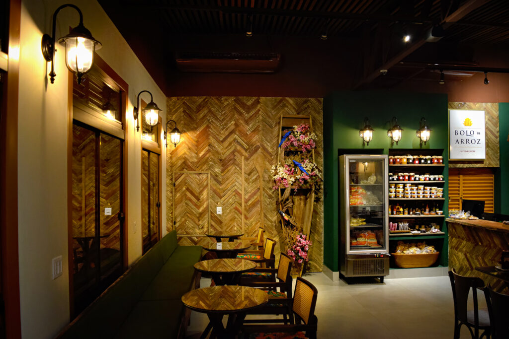 O Bolo de Arroz & Cuiabanices transforma a tradição cuiabana em uma experiência de marca sofisticada e memorável. A partir de uma imersão cultural profunda, o projeto traduz elementos icônicos da região em uma linguagem contemporânea de Retail Design, unindo identidade, atmosfera e estratégia comercial. Balaios reinterpretados, ladrilhos portugueses, madeira, ferro e referências pantaneiras compõem um ambiente autêntico e envolvente. O layout fluido integra balcão e mesas com eficiência operacional, enquanto a exposição dos produtos valoriza doces típicos e sabores regionais. A iluminação reforça a experiência sensorial e a permanência no espaço. O reconhecimento vem em 2019, com o 3º lugar no Prêmio RDI – Retail Design Institute, na categoria Bares, Cafeterias e Restaurantes. Hoje, o Bolo de Arroz & Cuiabanices é praticamente um ponto turístico de Cuiabá — um símbolo de cultura transformada em experiência.