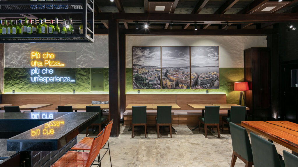 A Bravi Pizzaria Napoletana nasceu com a proposta de trazer para Cuiabá a autenticidade da verdadeira pizza de Nápoles, aliando tradição e contemporaneidade em uma experiência única. O desafio foi criar um ambiente que fugisse do estereótipo das cantinas italianas, sem perder a essência napolitana. O resultado é um espaço acolhedor, moderno e cheio de personalidade, onde cada detalhe reforça o conceito da marca.