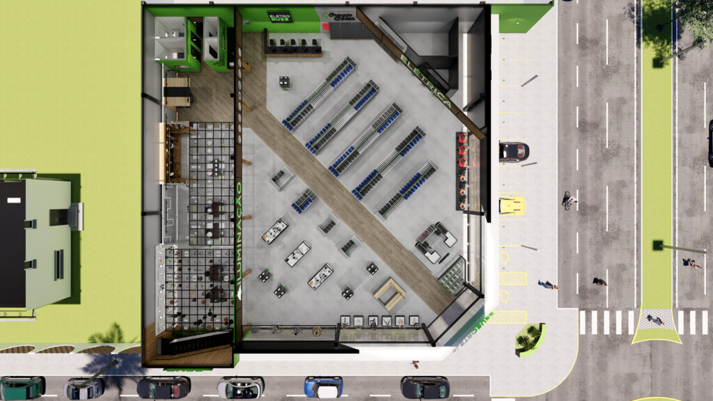 A EletroBuss foi concebida para traduzir em arquitetura o dinamismo e a inovação do universo da elétrica e da iluminação. Localizada em Primavera do Leste (MT), a loja apresenta um conceito marcante, no qual identidade visual e projeto arquitetônico trabalham de forma integrada, criando uma experiência de compra clara, funcional e impactante.