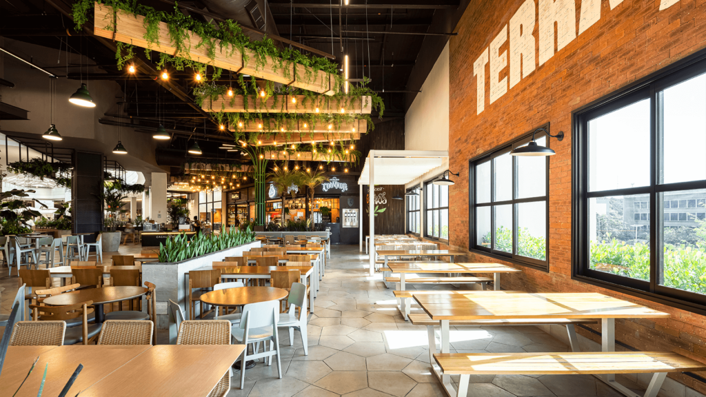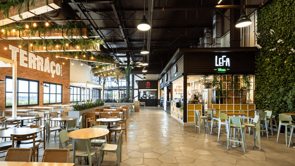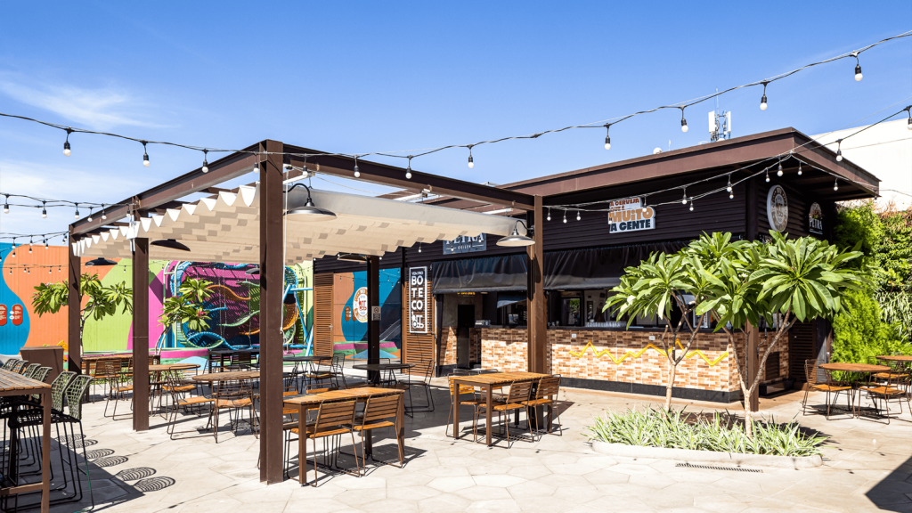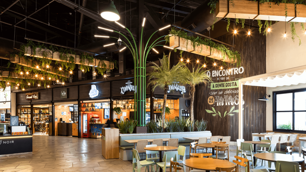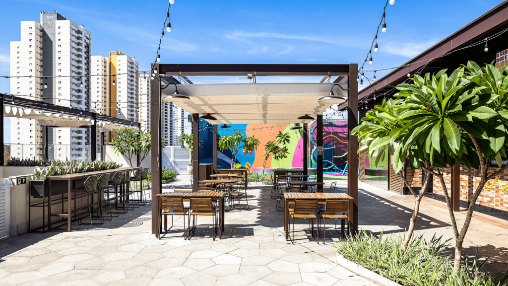 Primeiro rooftop em shopping do Mato Grosso, o Terraço do Pan é um marco de arquitetura comercial e experiência. Com mais de 1.300 m², o espaço une lazer, gastronomia e vista privilegiada da cidade, transformando a relação do consumidor com o Pantanal Shopping.
